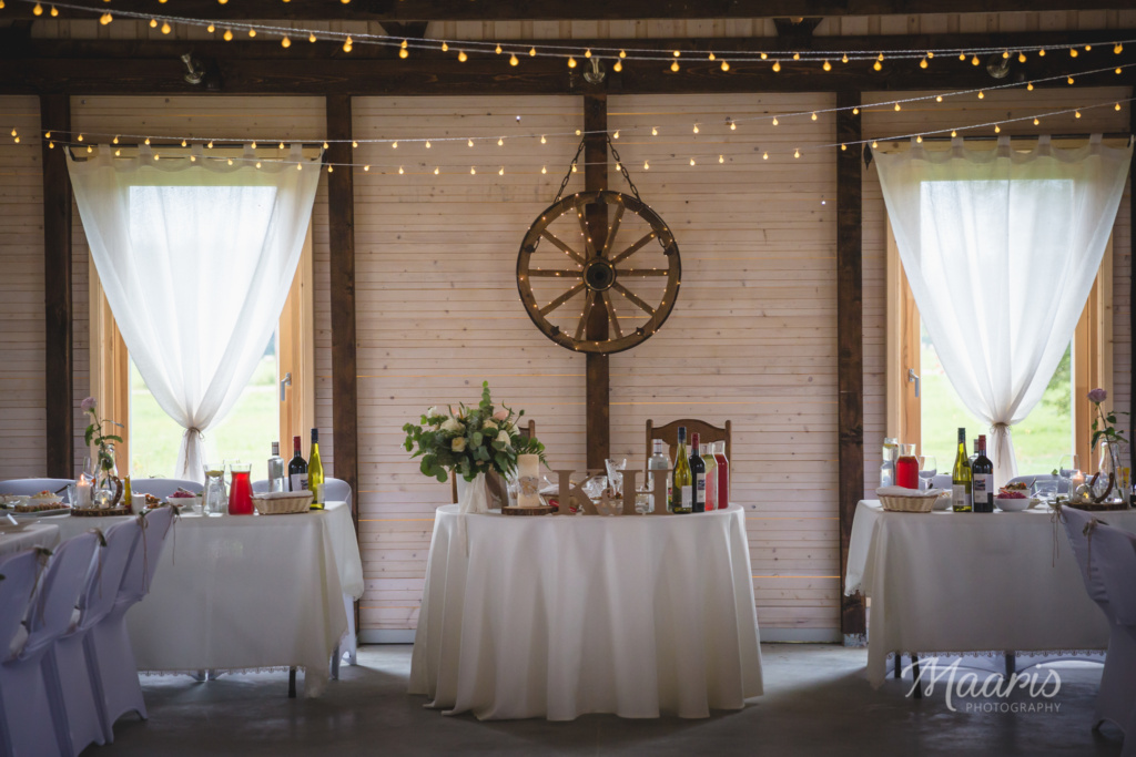 Peamaja saal mahutab aastaringselt kuni 55 külalist. Suviseks pulmaks asub meie õuel kuursaal, kuhu mahub kenasti kuni 100 külalist.